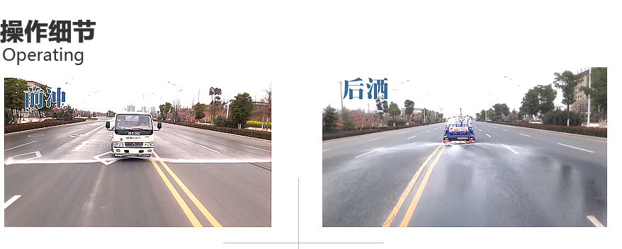 4.根据使用环境要求可选装前置电控洒水炮,实现远程遥控**,360度旋转无死角,后工作平台可加装喷雾机组,用于园林绿化部门给景观花木喷洒农药,也可将后喷雾炮调节成雾化状态,用于降温、降尘、净化空气作用。